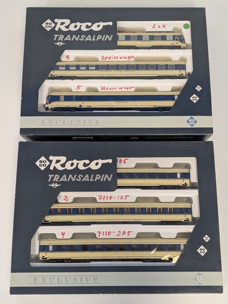 2 X 1994 ROCO HO SCALE MODEL OF THE ÖBB CLASS 4010 'TRANSALPIN' ELECTRIC MULTIPLE UNIT TRAIN SETS 43053 / 43054 Condition: Good - Refer To Images 232903+1