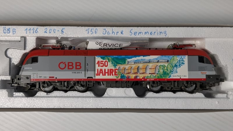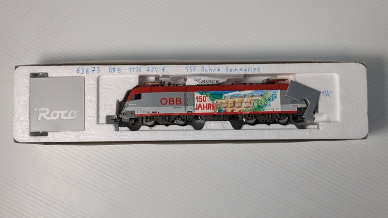 2004 ROCO 63673, A SCALE MODEL OF THE ÖBB 1116 200-5 ELECTRIC LOCOMOTIVE. IT FEATURES A SPECIAL '150 JAHRE SEMMERINGBAHN' (150 YEARS OF THE SEMMERING RAILWAY) COMMEMORATIVE LIVERYCondition: Good - Refer To Images232903+10