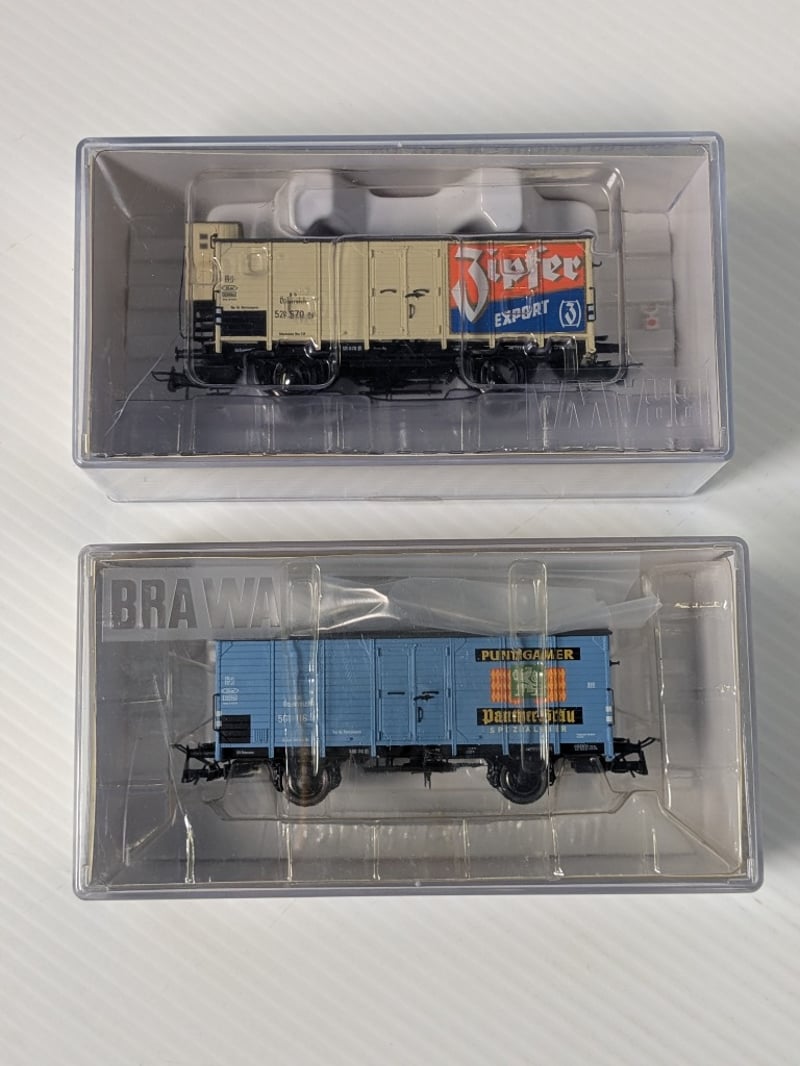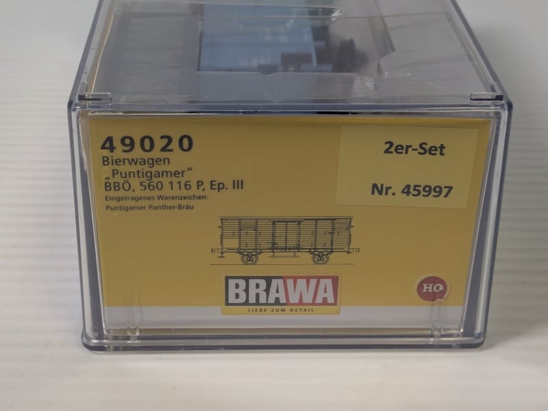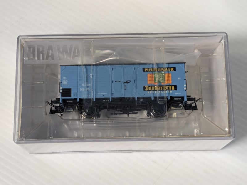 2015 BRAWA 49020 MODEL RAILROAD BEER WAGON, FEATURING THE PUNTIGAMER PANTHER BRÄU BRANDING IN EPOCH III LIVERY.
