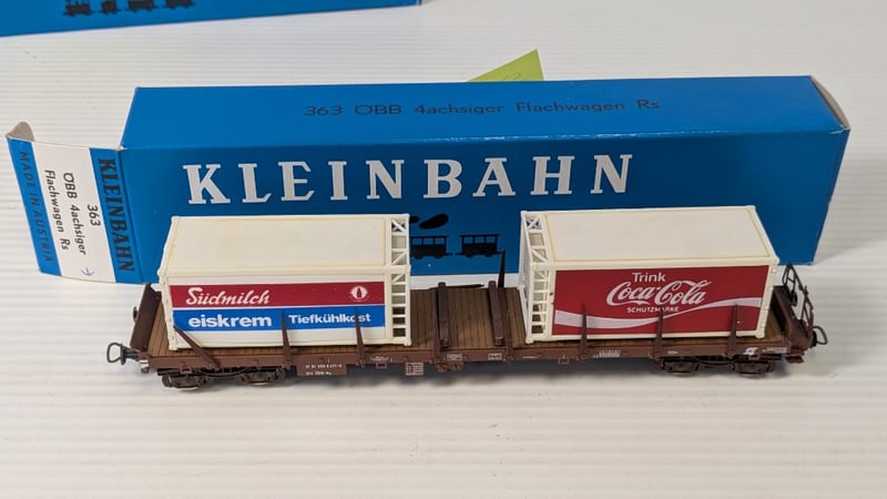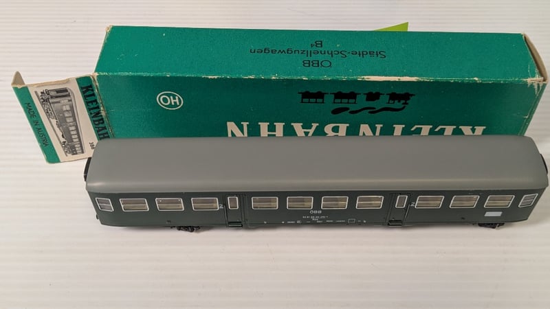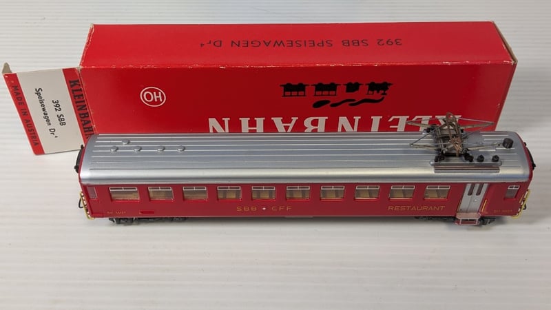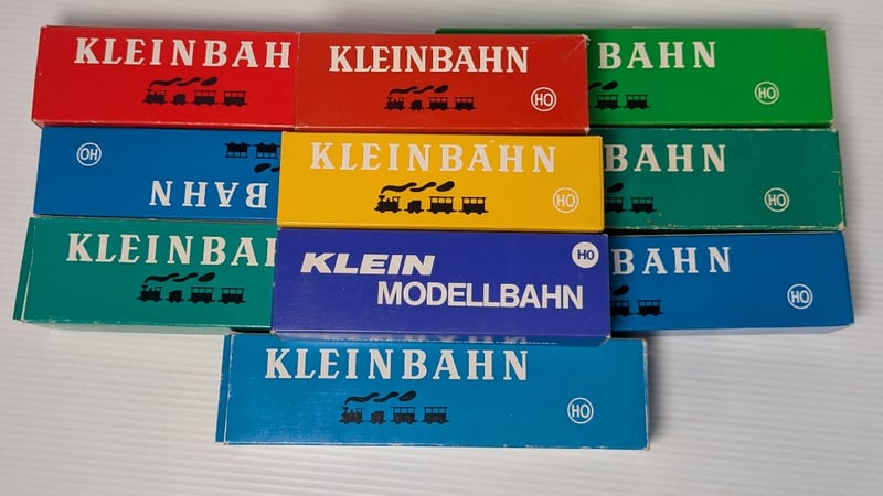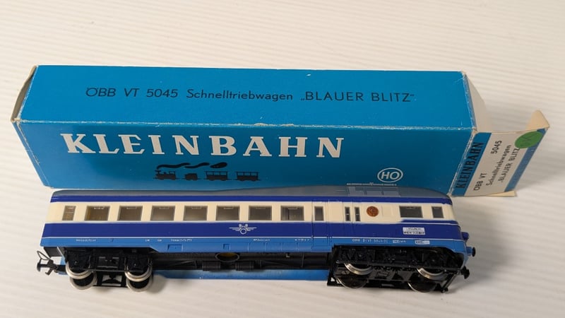 MODEL TRAINS 10 BOXED PIECES HO SCALE INCLUDING1988 KLEINBAHN MODEL TRAIN BOX FOR THE ÖBB VT 5045 'BLAUER BLITZ' EXPRESS DIESEL RAILCAR1991 KLEINBAHN MODEL OF AN SBB CFF RESTAURANT CARAND MORECondition: Good - Refer To Images232903+75