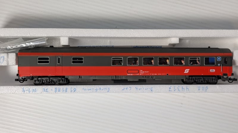 1990 ROCO 44317 MODEL TRAIN PASSENGER COACH WITH COACH LIGHT AND PASSENGERS