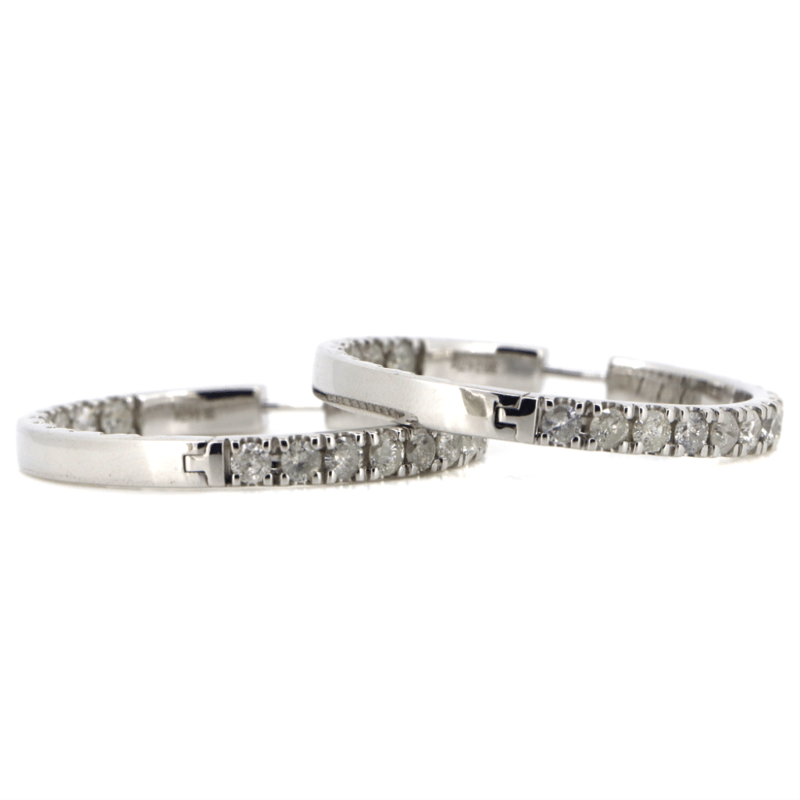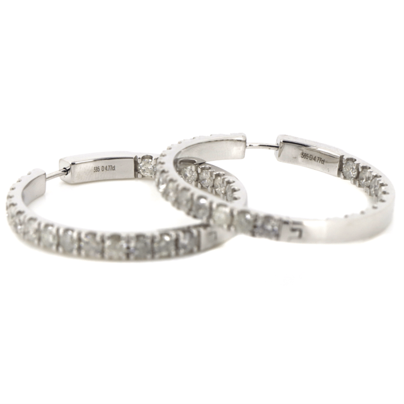 14K WHITE GOLD AND 4.77CT TDW DIAMOND, HOOP EARRINGS.