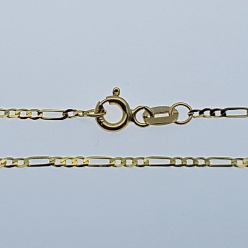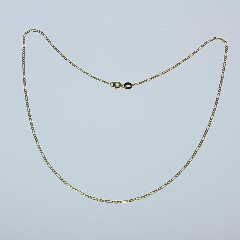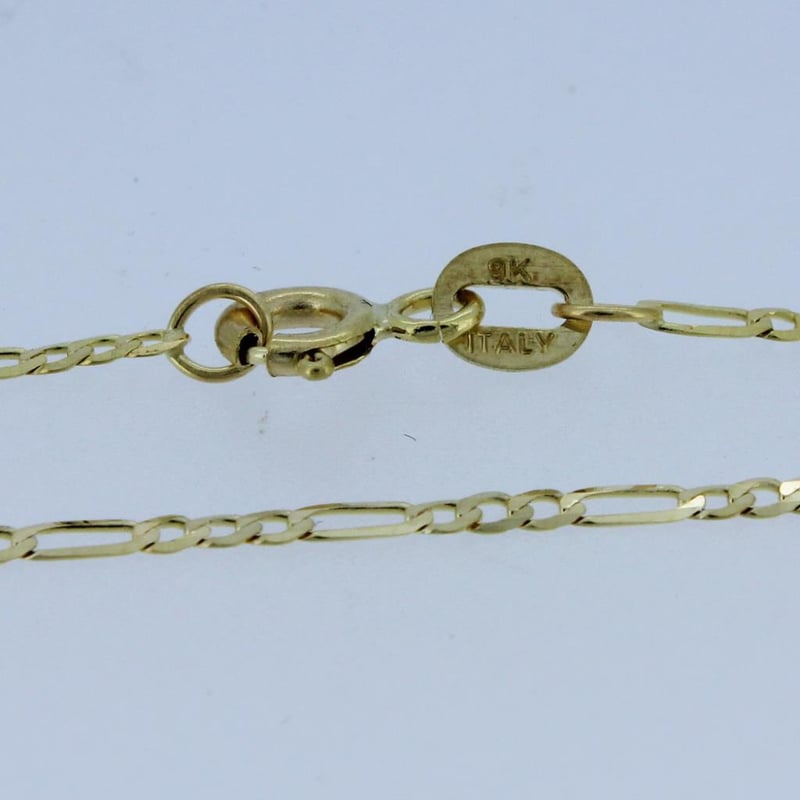 ITALIAN 9 KARAT YELLOW GOLD 80 CM FIGARO CHAIN NECKLACE (GAXPDE1+3) Stylish And Eye Catching, This Chain Is Made From Solid 9 Karat Gold Not Hollow , Genuine Solid 9 Karat Chain / Made In ItalyLength : 80 Cm = 32 Inches Approx. Width : 1.25 Millimetre ThicknessWidth : 0.35 Millimetre Gold Weight : 2.30 Grams Please Note : Pictures Are Enlarged / Zoomed To Show Details Of Chain , Please Refer To Description Above For Exact Details Of Chain Condition: Good - Refer Images 0488983+10