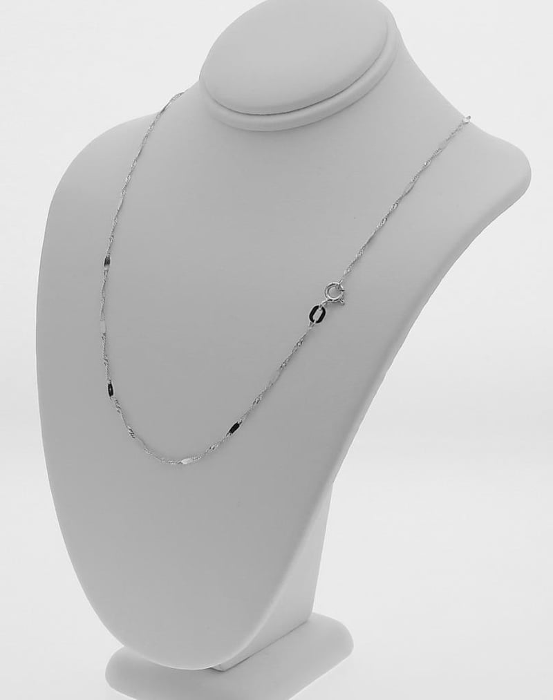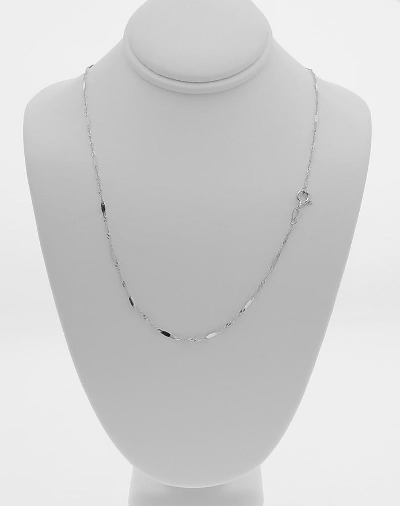 ITALIAN 9 KARAT WHITE GOLD 55 CM CHAIN NECKLACE (G2SIN-022) Stylish And Eye Catching, This Chain Is Made From Solid 9 Karat Gold Not Hollow , Genuine Solid 9 Karat Chain / Made In ItalyLength : 55 Cm = 22 Inches Approx. Width : 0.35 Millimetre ThicknessWidth : 0.35 Millimetre Gold Weight : 1.75 Grams Please Note : Pictures Are Enlarged / Zoomed To Show Details Of Chain , Please Refer To Description Above For Exact Details Of Chain Condition: Good - Refer Images 0488983+32
