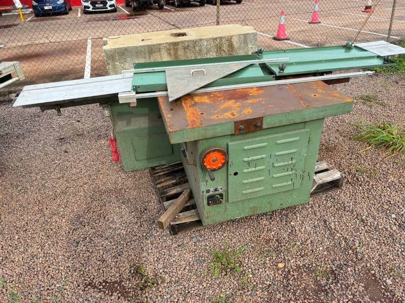 Design: A robust industrial sliding panel saw often used for large-scale furniture and cabinetry production.