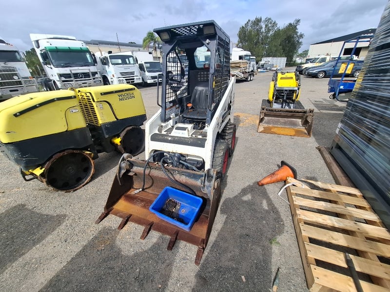 Description: Bobcat S70 mini loader with key, starts and runs however there is a hydraulic leak as seen in photos