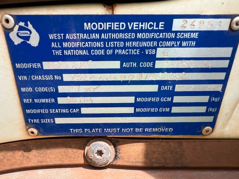 Description/Extras: Roll Over Protection, Heavy duty bull-bar, Mesh stone guard / windshield protector, Beacon light, Alpine Stereo, Seat Covers, 2 way Radio, Battery Isolation, Air System Not building Pressure, 1 Key.