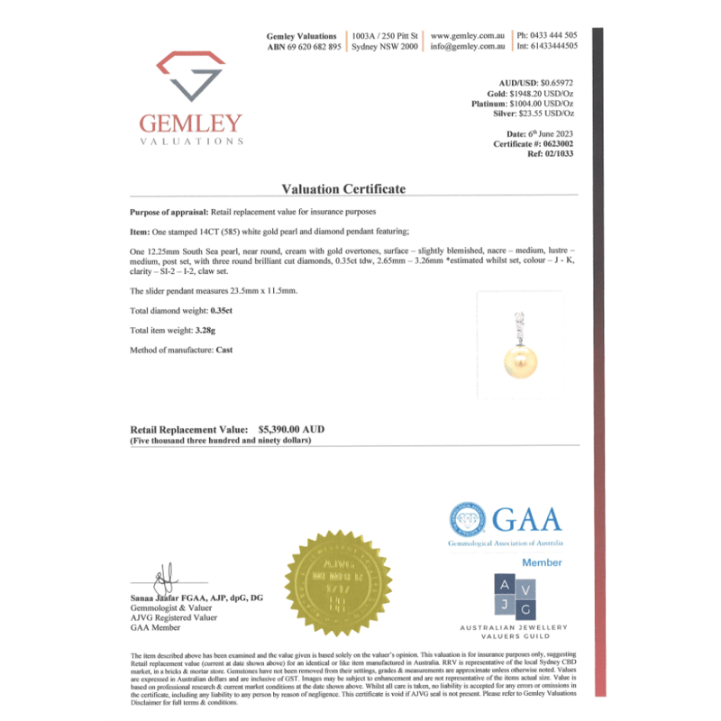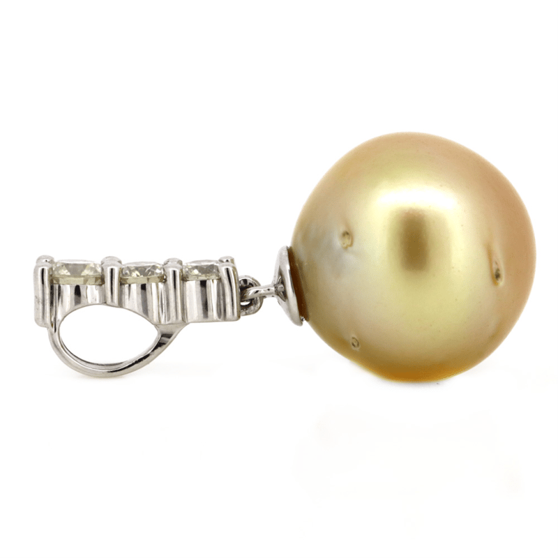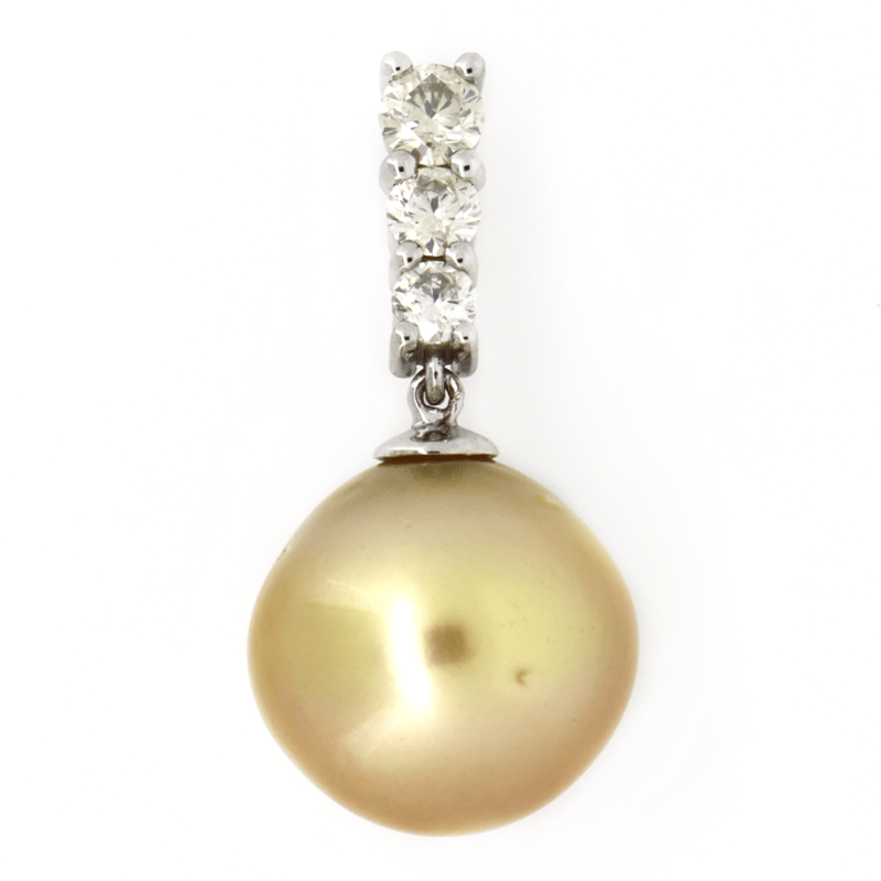 The Drop Features, One Near Round, Cream With Gold Overtones, Cultured South Sea Pearl (12.25Mm Size, Medium Lustre, Very Slight Blemishes). Surmounting The Drop Are, 3 Round Brilliant Cut, Diamonds (0.35Ct Tdw, J-K Colour, Si2-I2 Clarity), Claw Set.