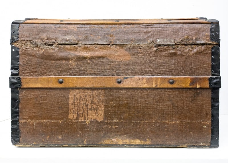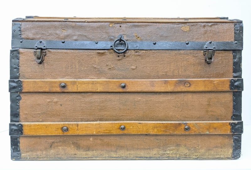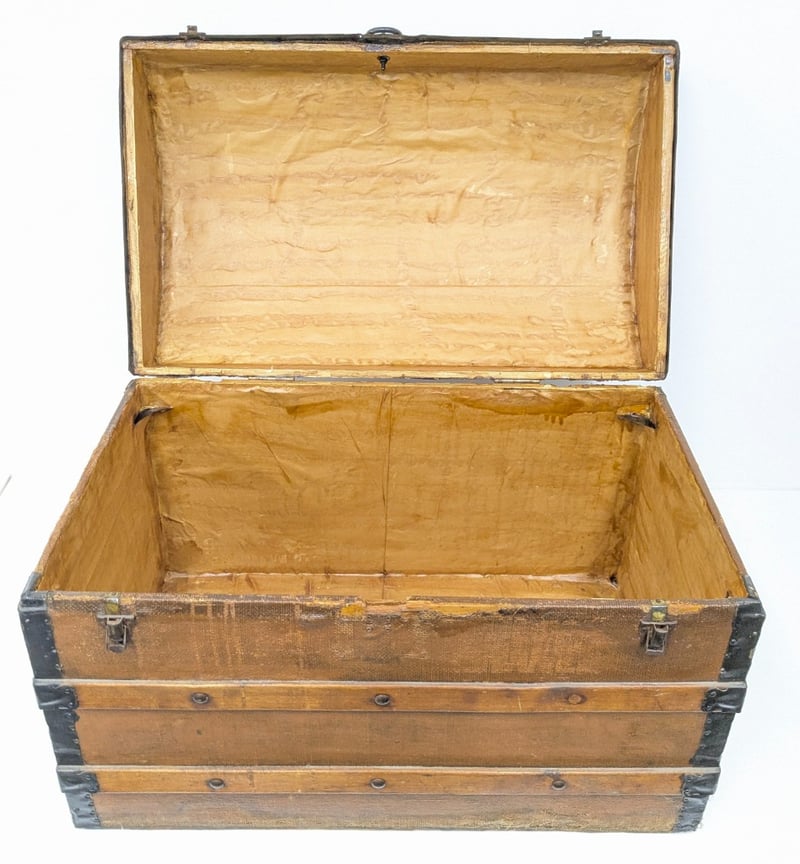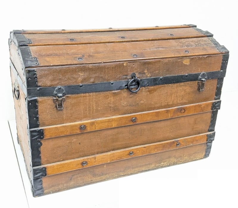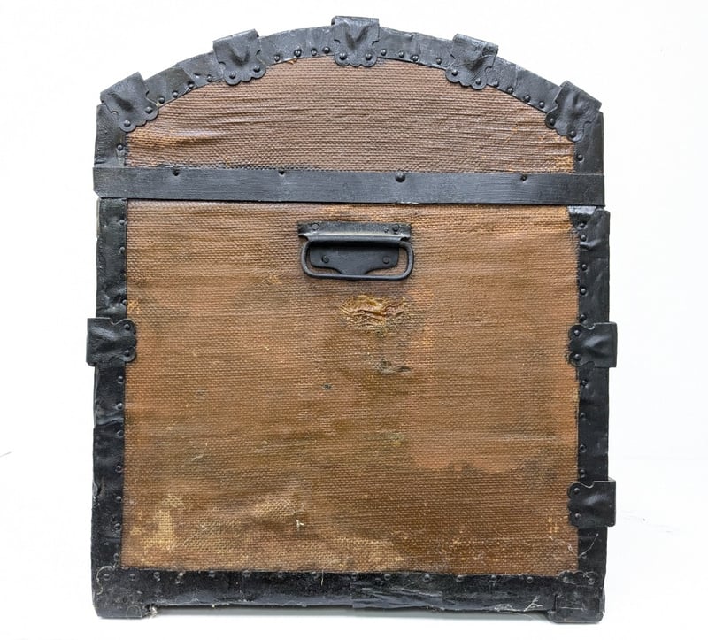 ANTIQUE PINE METAL-BANDED DOME TOP TRUNK