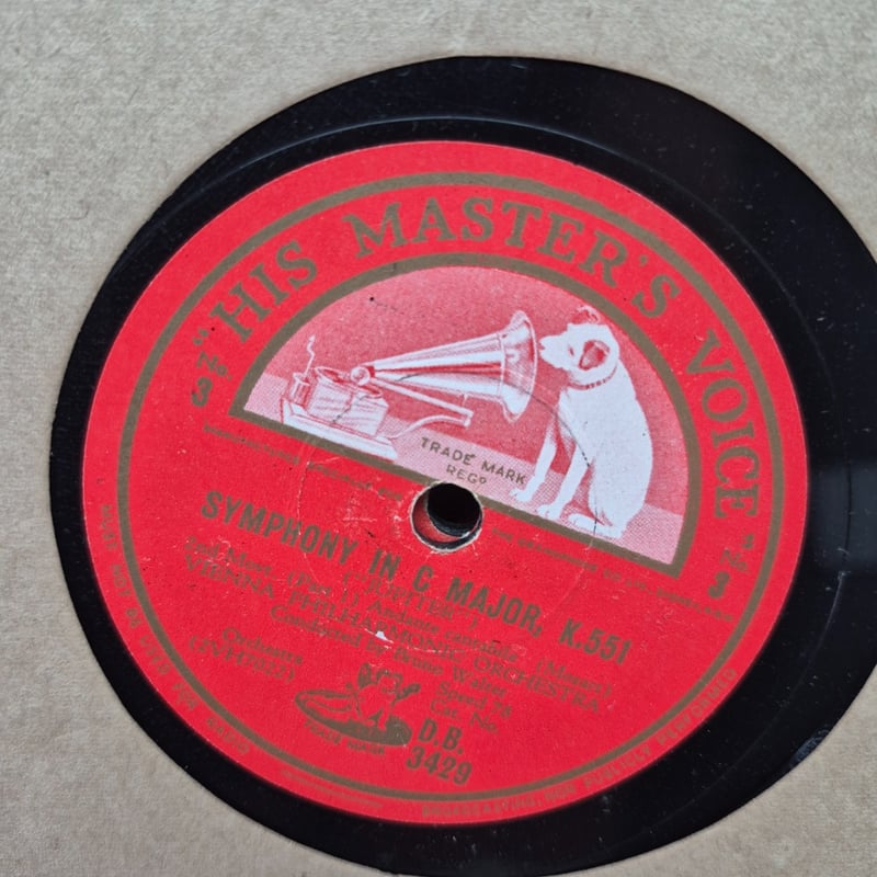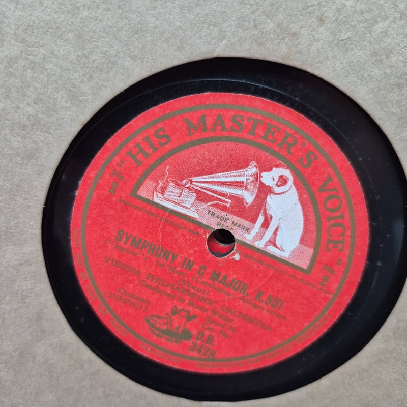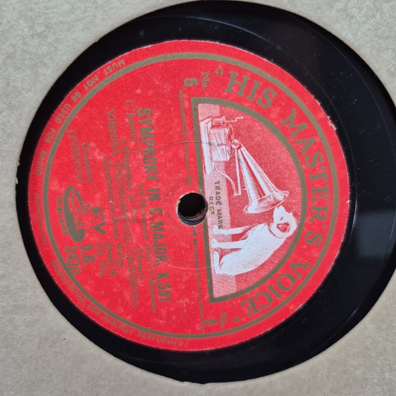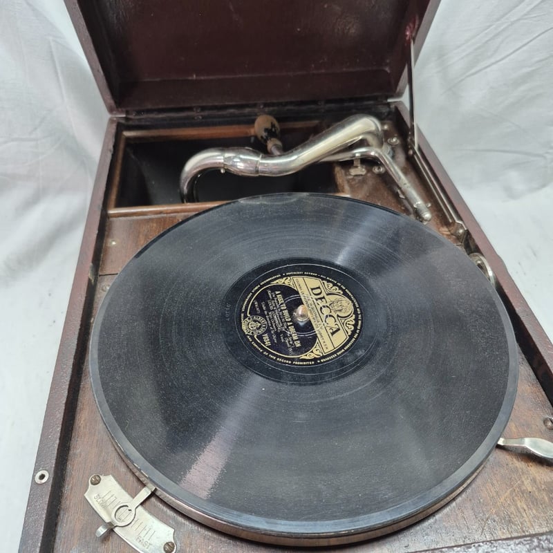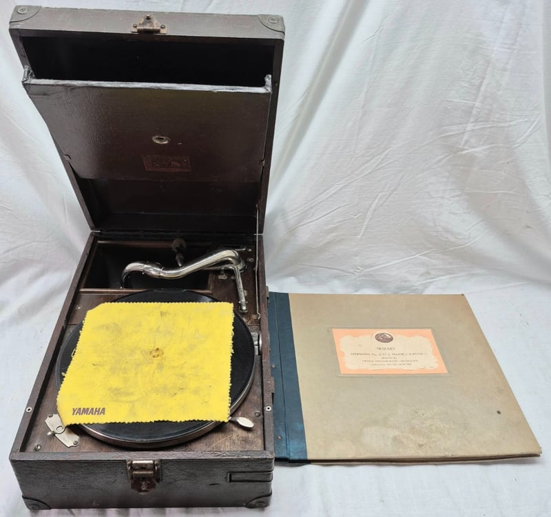 VINTAGE PORTABLE GRAMOPHONE WITH MOZART SYMPHONY RECORDS, CIRCA 1920S-1930S
