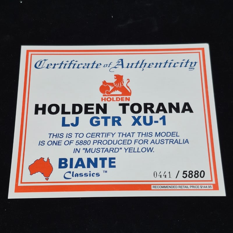 BIANTE HOLDEN LJ GTR XU1 0441/5880 MUSTARD YELLOW 1:18