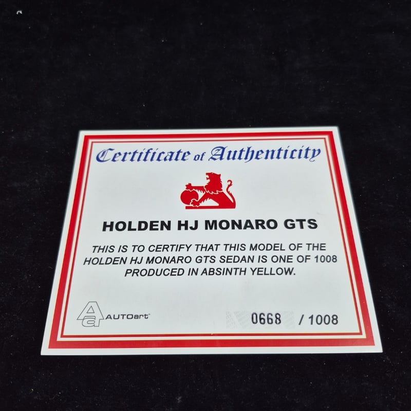 AUTO ART HOLDEN HJ MONARO GTS ABSINTH YELLOW 668/1008 Condition: Good - Refer To Images 587888+93