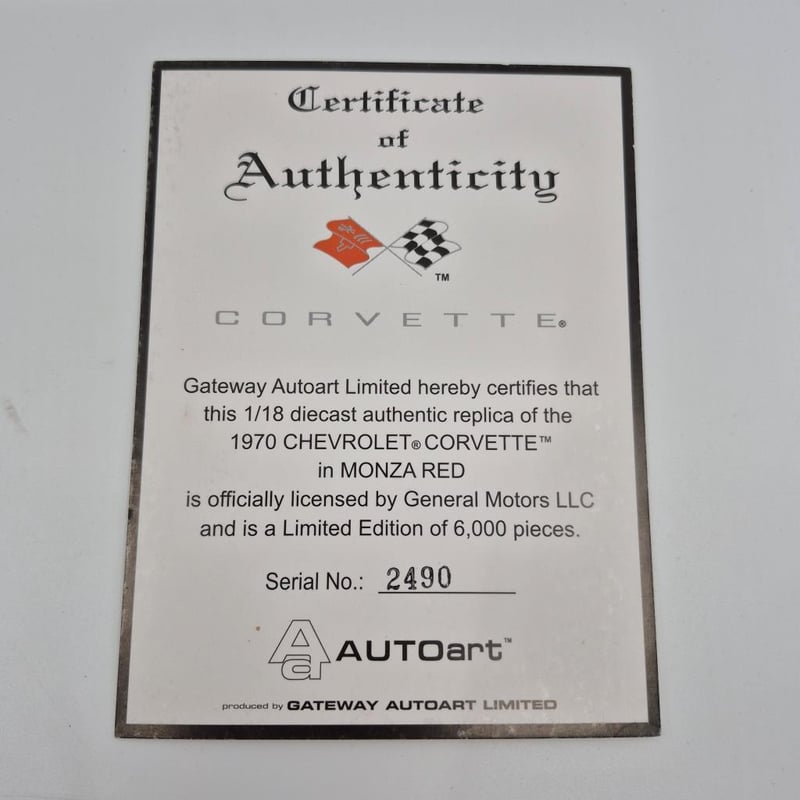 AUTO ART CHEVROLET CORVETTE 1970 MONZA RED 1:18
