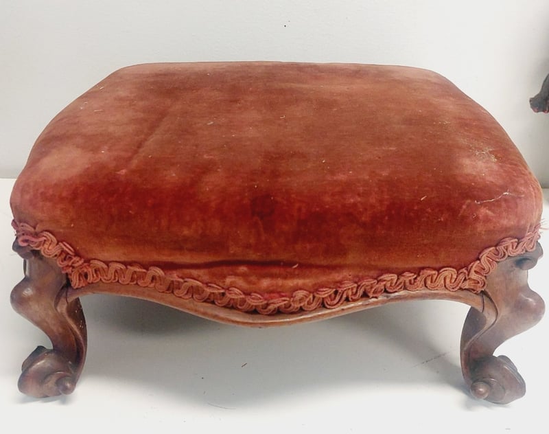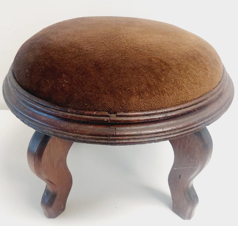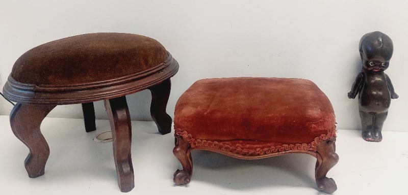VINTAGE WOODEN FOOTSTOOLS AND VINTAGE BLACK DOLL.