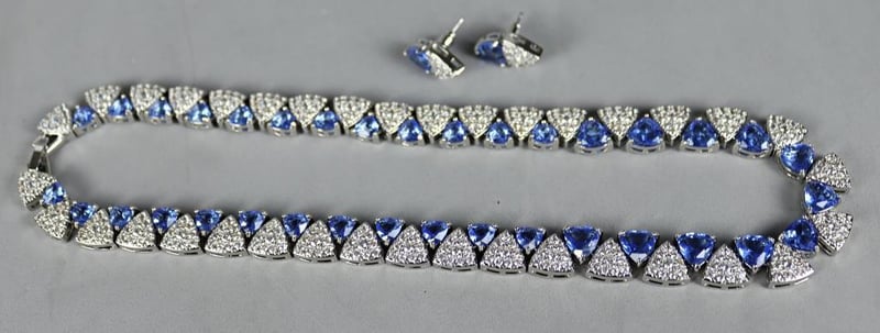 925 STERLING SILVER GEMSTONE NECKLACE AND EARRINGS - BLUE Type : 925 Sterling SilverMain Stone Color : BlueNotes : Women'S Jewellery Condition: Good - Refer Images 0488984+25