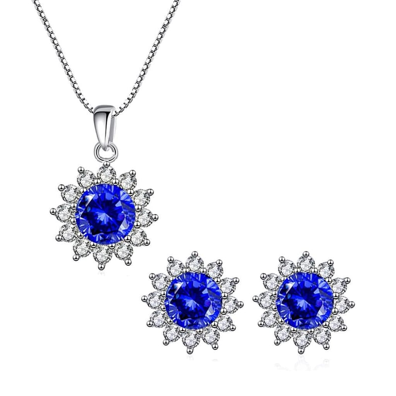 925 STERLING SILVER NECKLACE AND STUDS - CORNFLOWER Type : 925 Sterling SilverMain Stone Color : CornflowerNotes : Women'S Jewellery Condition: Good - Refer Images 0488984+35