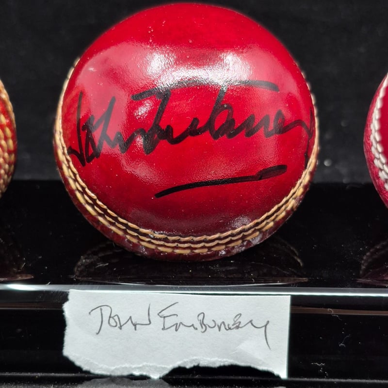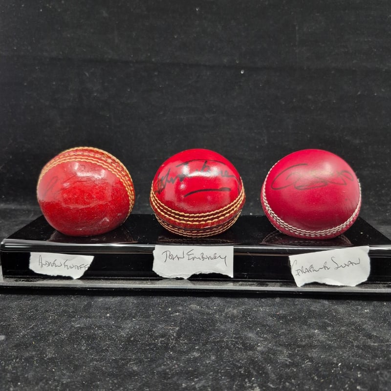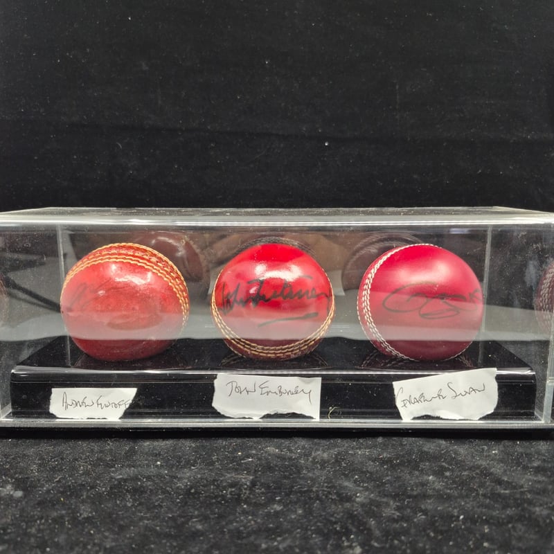 TRIO OF CRICKET BALLS SIGNED BY ANDREW FINTOFF, JOHN EMBURY & GRAEME SWAN
