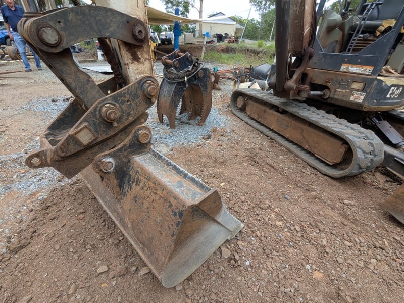 Description: Includes multiple attachments such as rock grab, post hole borer with 450mm and 300mm auger, rock breaker, quick hitch and 4 buckets. Starts and Runs