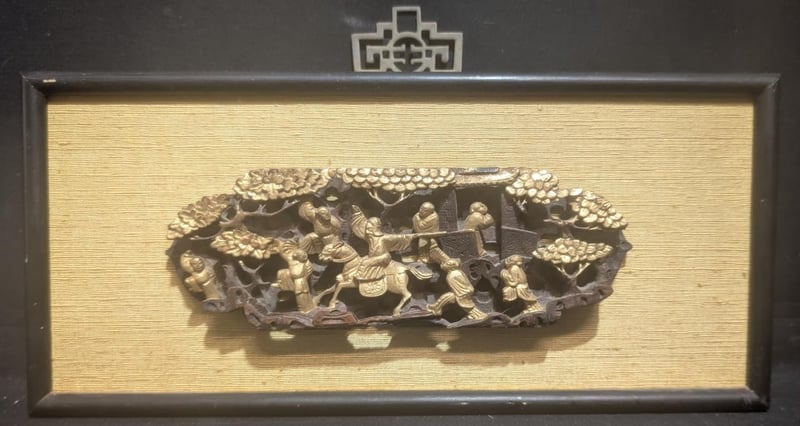 ANTIQUE STYLE CHINESE GOLD PAINTED WOODEN HAND CARVED WAL PLAQUE