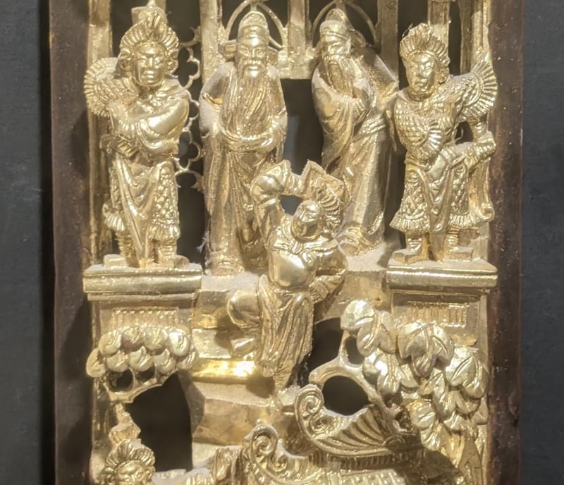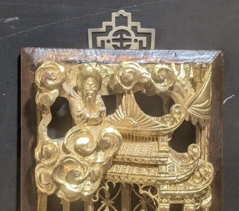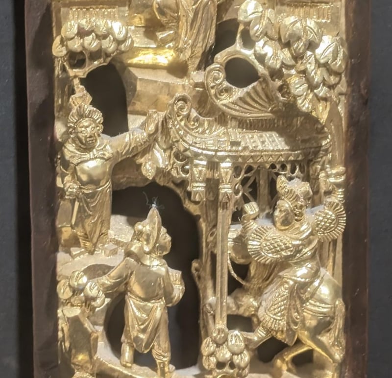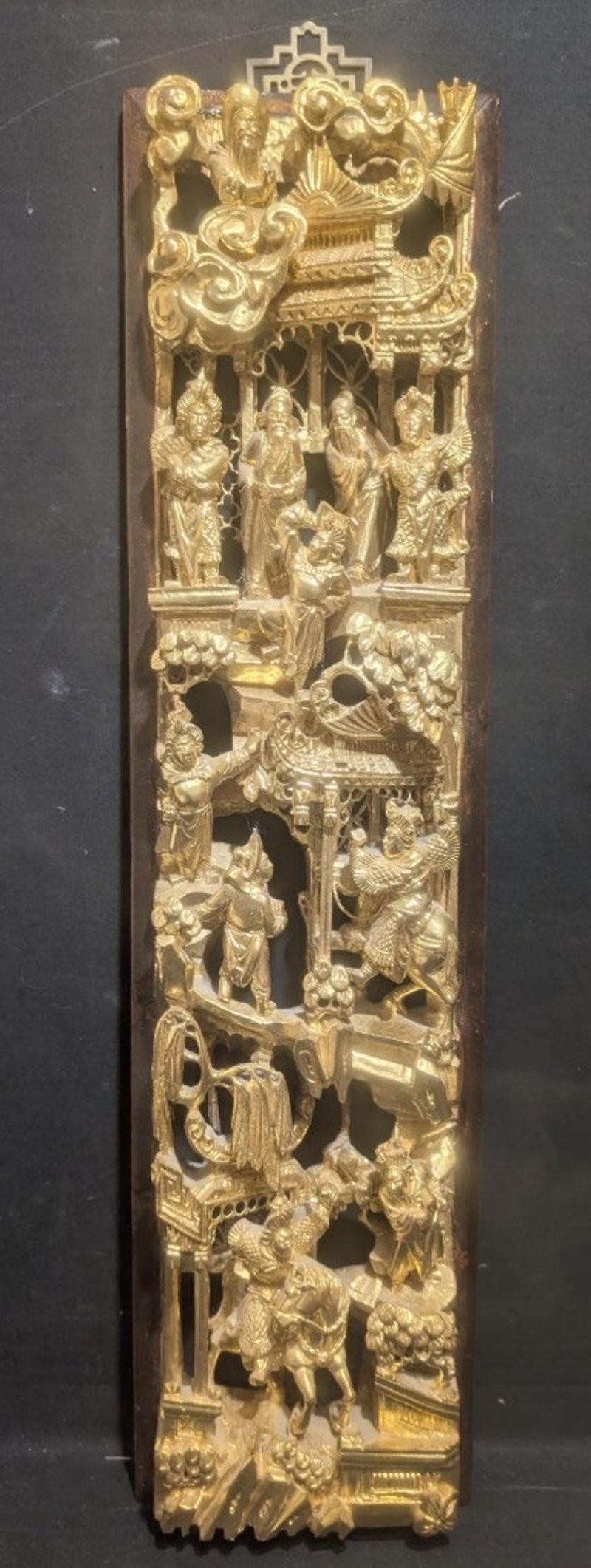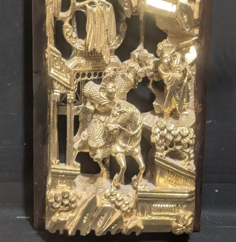 ANTIQUE STYLE CHINESE GOLD PAINTED WOODEN HAND CARVED WAL PLAQUE