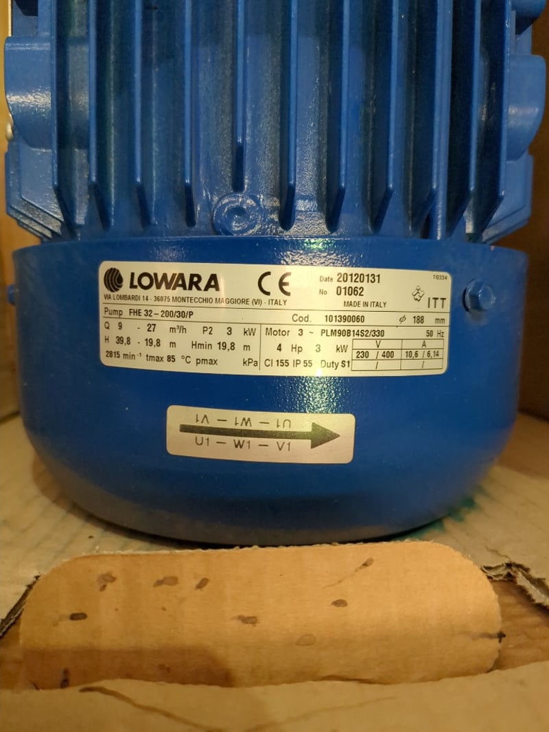 Lowara Centrifugal Pump 415V, FHE 32-200/30/P New Condition