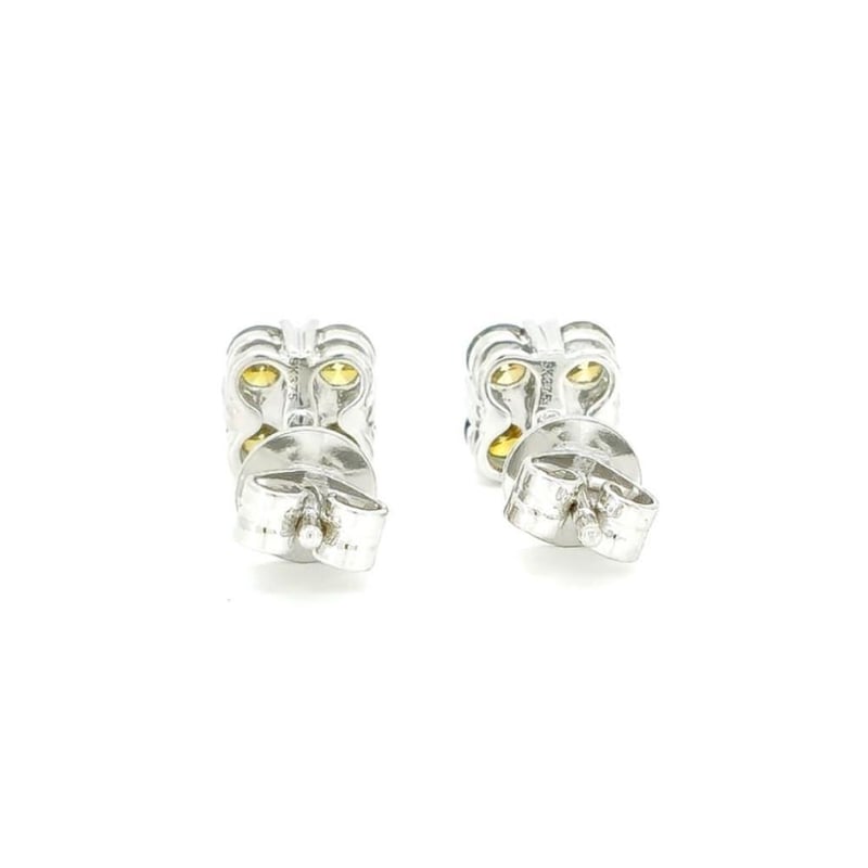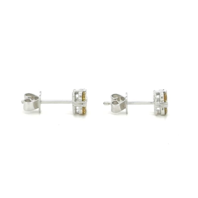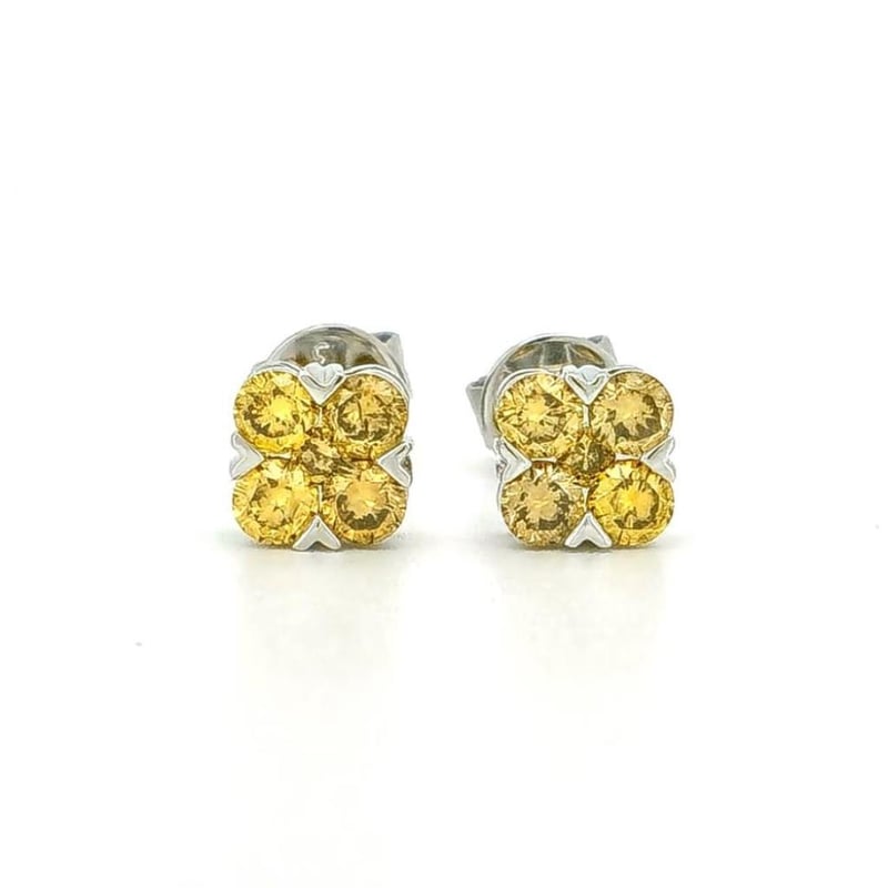 9CT WHITE GOLD FANCY YELLOW DIAMOND CLUSTER STUD EARRINGS