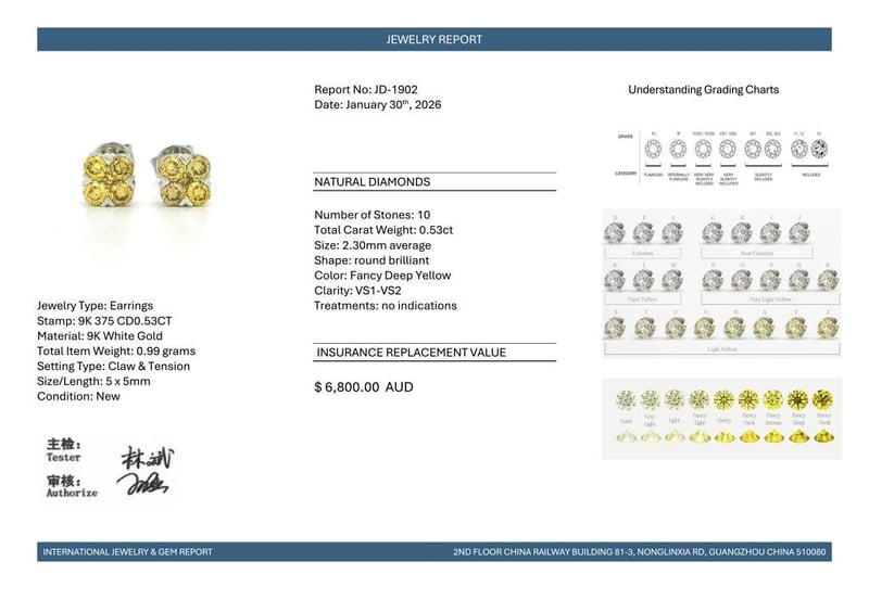 Featuring, 10 Round Brilliant Cut, Fancy Deep Yellow Diamonds (0.53Ct Tdw, Vs1-Vs2 Clarity), Claw/Tension Set.