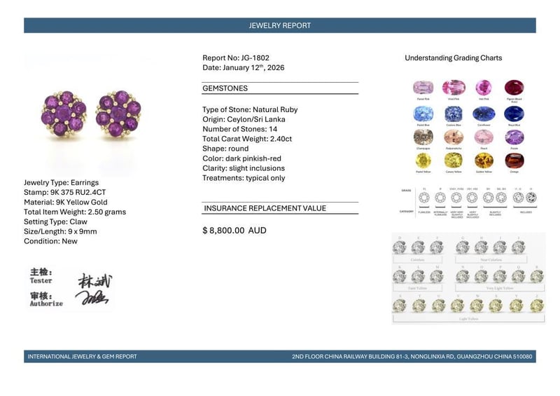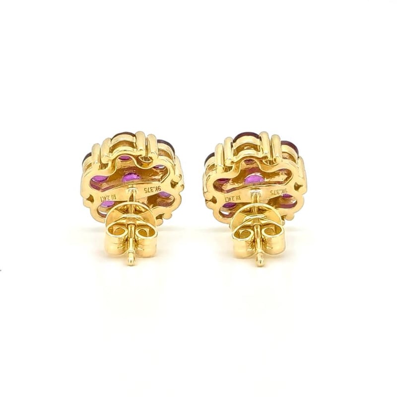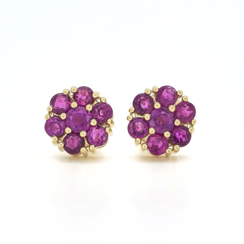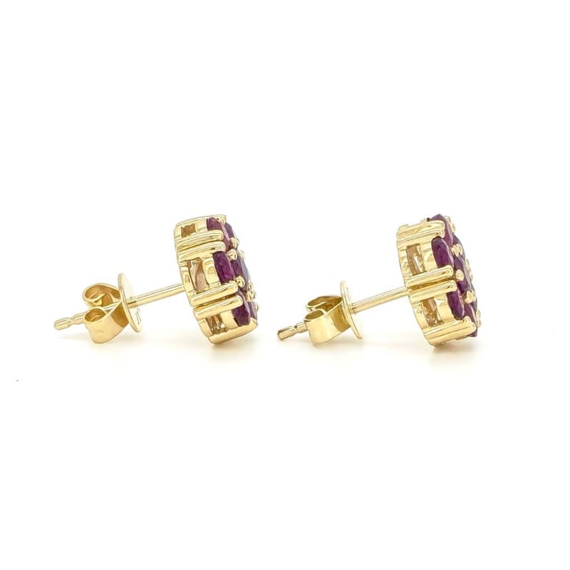 9CT YELLOW GOLD CEYLON RUBY FLORAL STUD EARRINGS Featuring, 14 Round Cut, Dark Pinkish-Red Ceylon Rubies (2.40Ct Tsw, Slight Inclusions), Claw Set. Valuations Provided by an Independent Third-Party Professional Not Directly Associated With Lloyds Auctions at AUD $8800This valuation has been conducted by an independent third-party professional. The valuation amount is an assessment by the issuing valuer and does not reflect the auction value of the item. Any inquiries regarding the valuation should be directed to the issuing valuer (refer to contact details on the certificate), as Lloyds Auctions has no affiliation or influence over the valuation, the valuer, or the stated amount. Condition: Good - Refer Images 0584524+2118