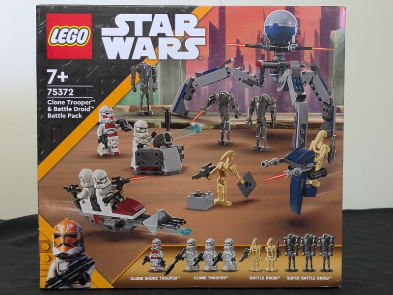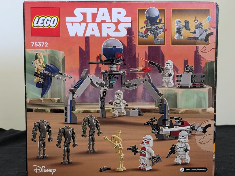 Lego Star Wars Set 75372 Featuring Clone Trooper And Battle Droid Minifigures With Buildable Droids And Vehicles. Includes Clone Shock Trooper, Multiple Clone Troopers, Battle Droids, And Super Battle Droids. Features Articulated Droid Figures And Small Craft/Vehicle Elements. Recommended For Ages 7+. Original Retail Packaging With Complete Contents Shown On Box Exterior.