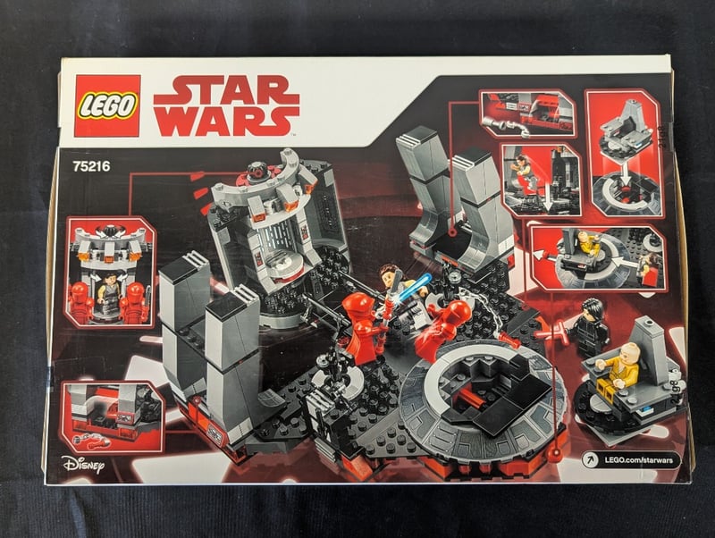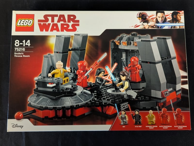 LEGO STAR WARS 75216 SNOKE'S THRONE ROOM SETLego Star Wars Set 75216 Featuring Snoke'S Throne Room From The Last Jedi. Complete Construction Set Includes Throne Room Chamber With Rotating Platform, Command Console, Tall Tower Structures, And Red Spherical Weapon Element.Condition: Good - Refer To Images584522+68
