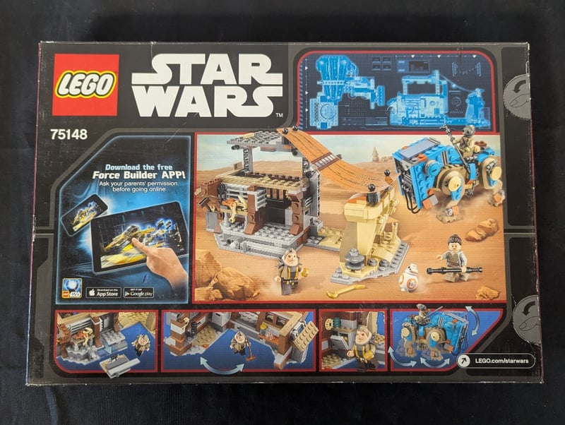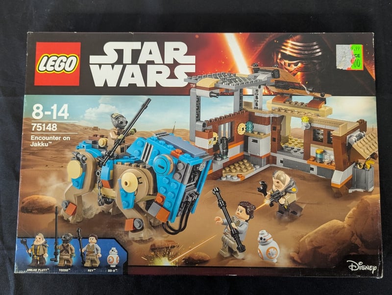 LEGO STAR WARS 75148 ENCOUNTER ON JAKKU SETLego Star Wars Set 75148 Featuring The Encounter On Jakku Scene From The Force Awakens. Includes Buildable Blue Speeder Vehicle With Rotating Cannon, Detailed Moisture Farm Structure With Opening Doors And Removable Panels,Condition: Good - Refer To Images584522+55