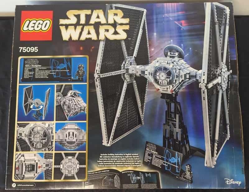 Lego Star Wars Set 75095 Tie Fighter, Age 14+, Featuring Detailed Minifigure, Articulated Wings, Rotating Cockpit, And Technical Building Construction. Sealed Original Packaging With Printed Box Artwork Showing Black Tie Fighter With Iconic Solar Panel Wings Against Space Backdrop. Includes Exclusive Building Instructions And Collector'S Credentials. Premium Ultimate Collector Series Release With Intricate Gray And Metallic Components For Authentic Star Wars Spacecraft Recreation.