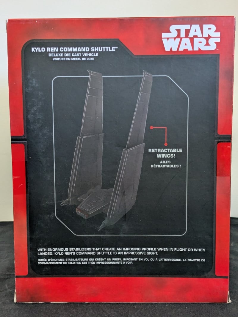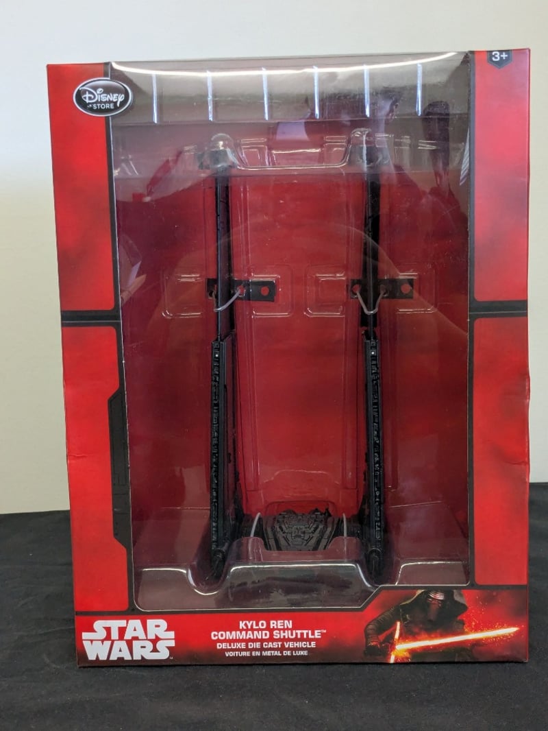 STAR WARS KYLO REN COMMAND SHUTTLE DELUXE DIE CAST VEHICLE - DISNEY STOREDisney Store Exclusive Star Wars Deluxe Die Cast Vehicle Featuring Kylo Ren'S Command Shuttle With Retractable Wings, Enormous Stabilizers, And Impressive Flight Profile. Original Packaging With Detailed Product Information And Character Imagery.Condition: Fair - Refer To Images584522+186