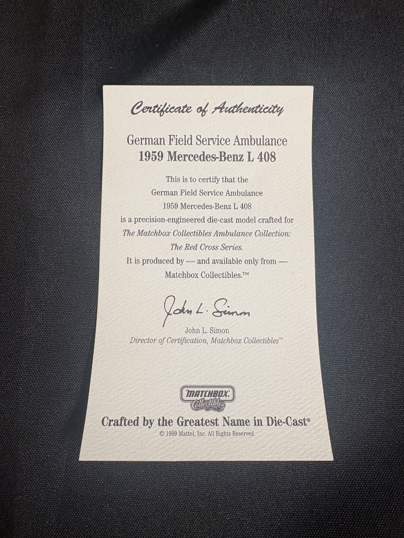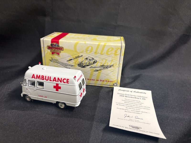 MATCHBOX COLLECTIBLES 1959 MERCEDES-BENZ L 408 GERMAN FIELD SERVICE AMBULANCE DIE-CAST MODEL Item Size: Height: 6cm, Width: 12cm, Depth: 5cm, Weight: 0.5Kg Precision-Engineered Die-Cast Ambulance Model From The Matchbox Collectibles Ambulance Condition: Good - Refer To Images 584552+1