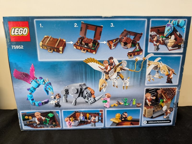 LEGO FANTASTIC BEASTS 75952 NEWT'S CASE OF MAGICAL CREATURES SET Item Size: Height: 35cm, Width: 35cm, Depth: 35cm, Weight: 2Kg Lego Fantastic Beasts Set 75952 Featuring Newt'S Case With Transformable Magical Creatures Including A Golden Thunderbird With Articulated Wings, Grey Niffler Beast, And Pink-Winged Creature. Includes Minifigures And Detailed Brick-Built Case Structure With Opening Compartments. Age 8-14. Condition: Good - Refer To Images 655508+138
