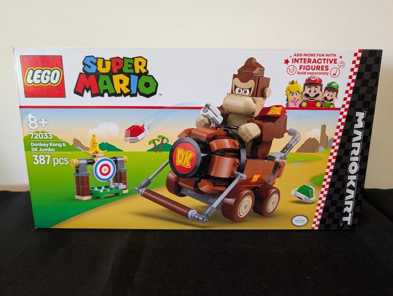 LEGO SUPER MARIO SET 72033 DONKEY KONG & DK JUMBO Item Size: Height: 28cm, Width: 38cm, Depth: 12cm, Weight: 2Kg Lego Super Mario Set 72033 Featuring Donkey Kong & Dk Jumbo Construction Set With 387 Pieces. Set Includes Buildable Donkey Kong Figure With Movable Joints, Brown Construction Vehicle With Projectile Launcher, Target Element, And Interactive Features. Suitable For Ages 8+. Includes Qr Code For Digital Action Viewing And Interactive Figure Compatibility Condition: Good - Refer To Images 655508+142