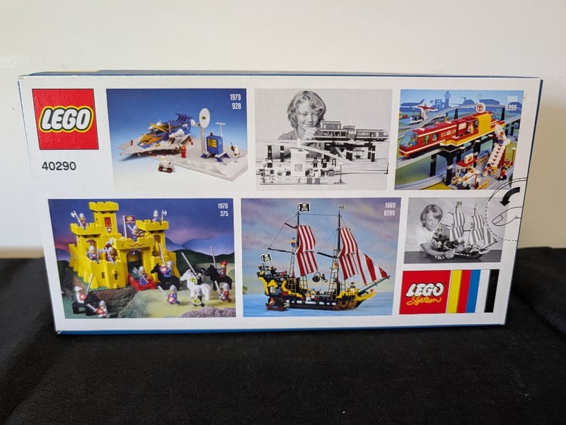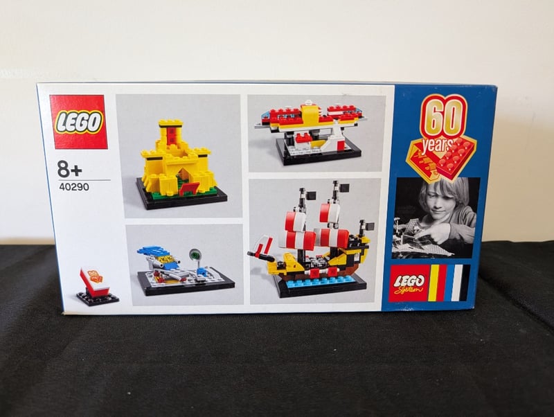 LEGO SET 40290 - 60 YEARS CELEBRATION COMMEMORATIVE COLLECTION Item Size: Height: 25cm, Width: 25cm, Depth: 25cm, Weight: 2Kg Lego Set 40290 Is A Special 60 Years Anniversary Commemorative Collection Featuring Four Iconic Buildable Models Representing Pivotal Moments In Lego'S History. The Set Includes A Yellow Classic Castle, A Red And White Fire Engine With Extending Ladder, A Yellow And Red Pirate Ship With Striped Sails, And A Small Vintage-Inspired Racing Vessel. Packaged In Original Retail Box With Detailed Instruction Imagery Showcasing Historical Lego Sets From 1978-1989 And Archival Photographs. Designed For A Condition: Good - Refer To Images 655508+143