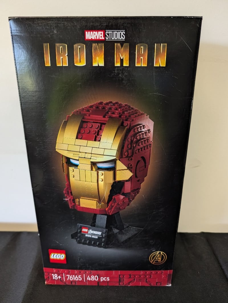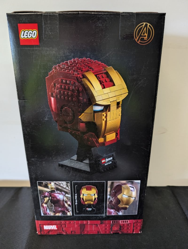 LEGO MARVEL STUDIOS IRON MAN HELMET DISPLAY MODEL SET 76165 Item Size: Height: 30cm, Width: 30cm, Depth: 30cm, Weight: 3Kg Lego Marvel Studios Iron Man Helmet Collectible Bust (Set 76165), Featuring Red And Gold Minifigure-Scale Construction With Light-Up Eyes, Display Stand, 480 Pieces, Age 18+. Box Shows Wear Consistent With Display Storage. Condition: Good - Refer To Images 655508+144
