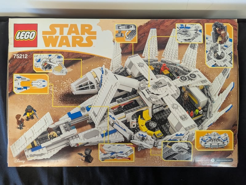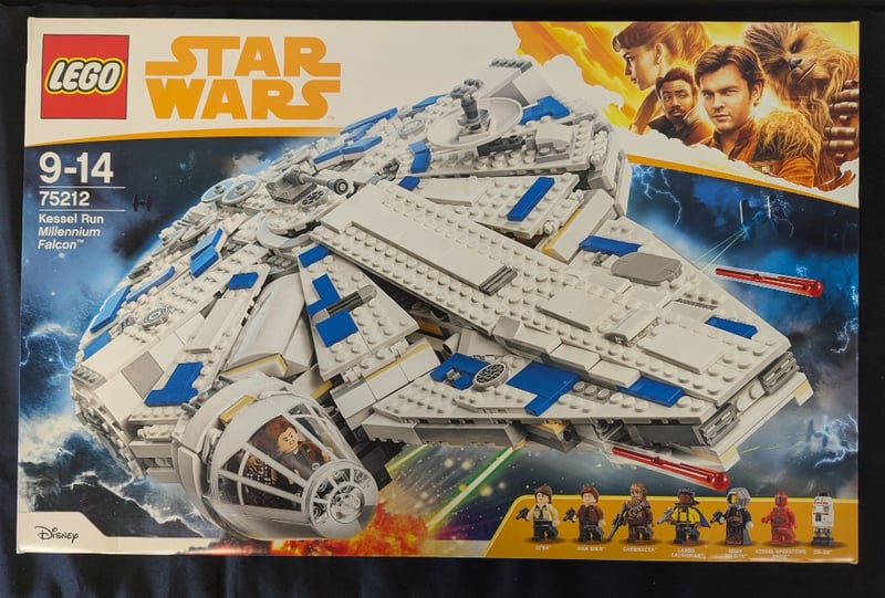LEGO Star Wars Kessel Run Millennium Falcon – 75212 Official LEGO Star Wars set 75212 Kessel Run Millennium Falcon (from Solo: A Star Wars Story) Age range: 9–14 years Retired set (released 2018) Includes: Large, detailed Millennium Falcon with white/blue Kessel Run colour scheme, opening cockpit, rotating turret, and interior 7 minifigures: Qi’ra, Han Solo, Chewbacca, Lando Calrissian, plus additional Kessel Operations characters and BB-8 Perfect condition box with vibrant graphics. Excellent display piece for Star Wars collectors or a large, impressive LEGO build. 584526+109