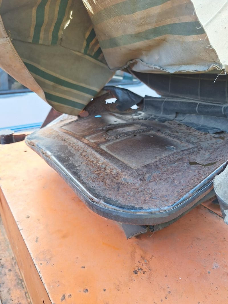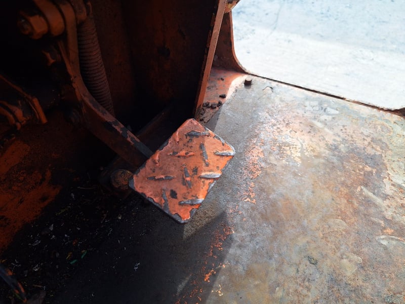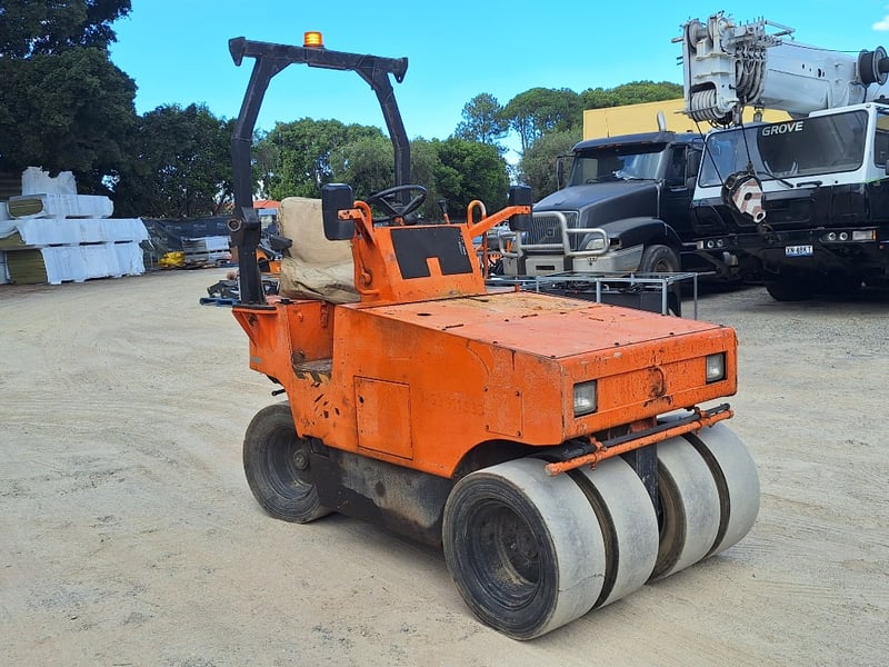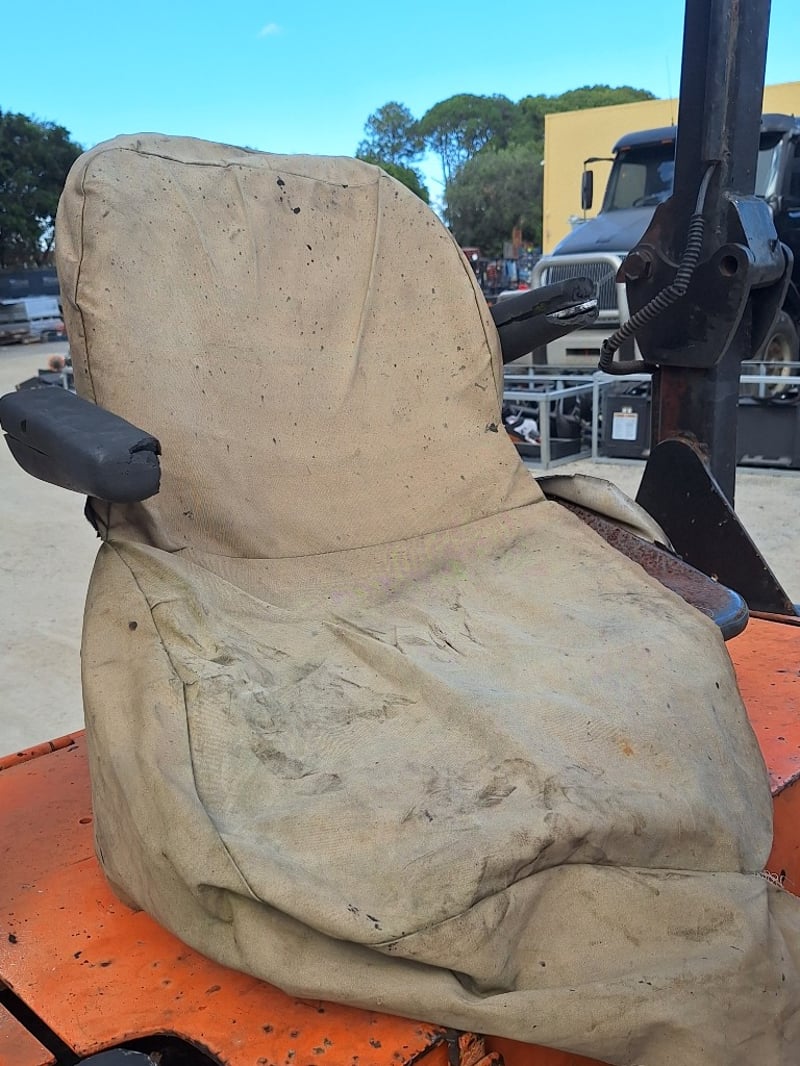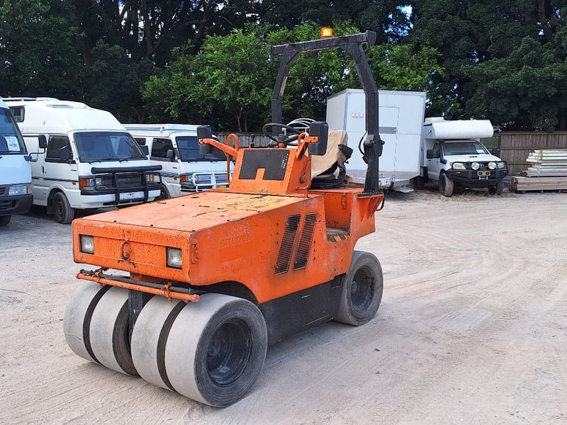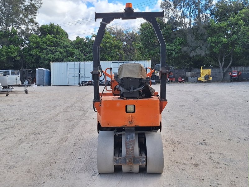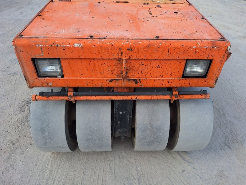 Description/extras: Sakai Pneumatic Tyre Roller, 4 x Front Solid Wheels, 3 x Rear Solid Wheels, Rear Steer, Forward And Reverse, Amber Light, ROPS. Worn seat cover, weathered paint finish, surface corrosion on metal components, worn cabin upholstery, minor dents on body panels, aged rubber seals.