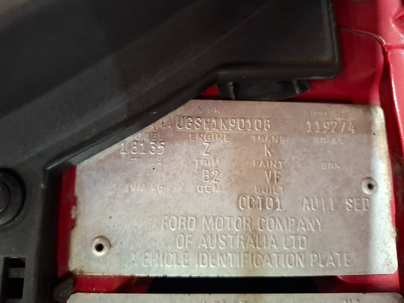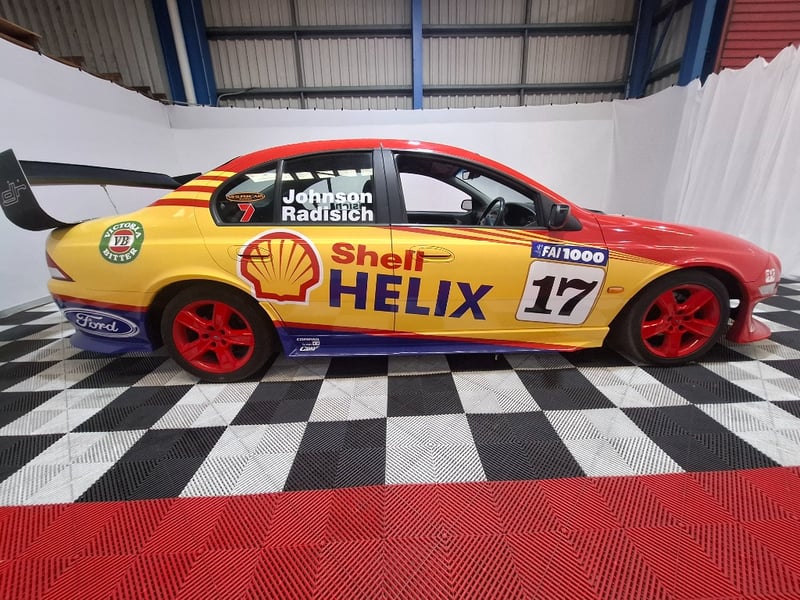 1998 Ford AU Falcon XR6- Dick Johnson "17" Tribute Year: 1998 Make: Ford Model: Falcon Series: AUII Badge: XR6 Body: 4-Door Sedan Drive Type: Rear wheel drive Odometer: Indicating 187,187,791 Kilometers Engine: 5.0 V8 Turbo Petrol Transmission: 5-Speed Manual Colour: Red Seats: 5 Description/extras: Dick Johnson Shell "17" supercar tribute, Minor wear and tear. VIN: 6FPAAAJGSW1K90108 Engine number: JGCM2L30480 (Key # unknown) Lloyds stock #655560+1 #CCALL #CCAUS