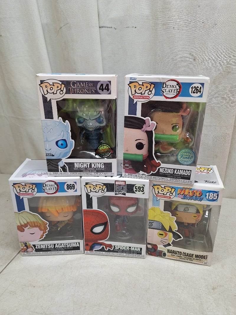 5x POP ANIMATION funko, vinyl figures, including NARUTO, Game of Thrones, Demon Slayer and Marvel, NEW in boxes