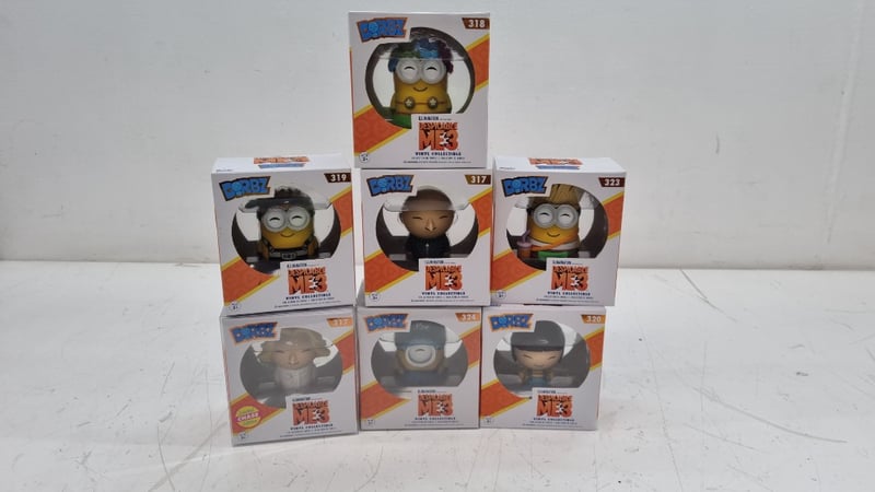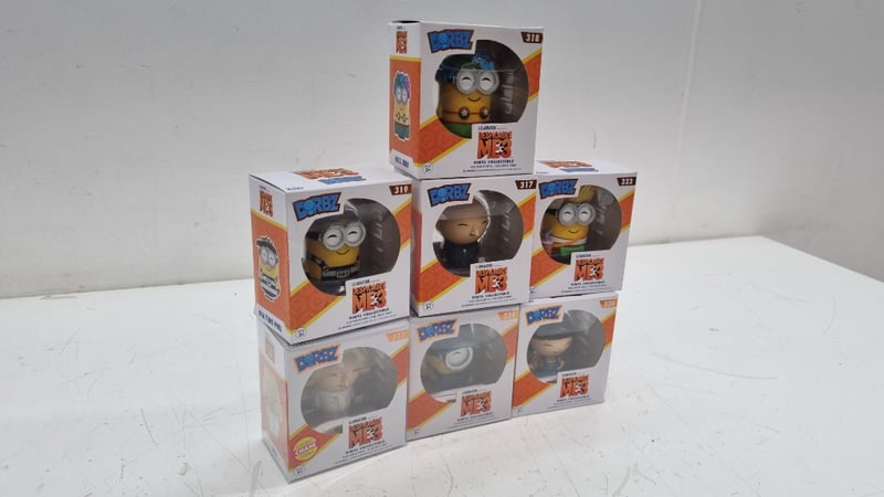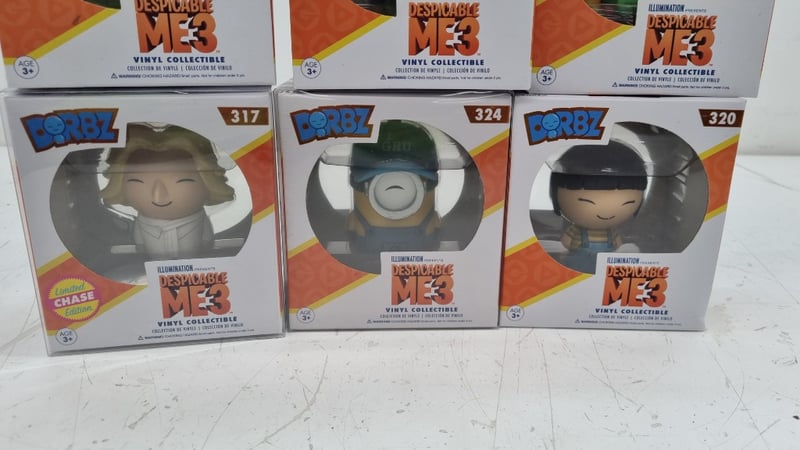 DESPICABLE ME 3 FUNKO DORBZ VINYL COLLECTIBLE FIGURES - COMPLETE SET OF 9 Item Size: Height: 10cm, Width: 10cm, Depth: 10cm, Weight: 1Kg Comprehensive Collection Of Nine Funko Dorbz Vinyl Collectible Figures From Illumination'S Despicable Me 3 Franchise, Featuring Numbered Variants #317, #318, #319, #320, #323, And #324. Set Includes Minion Characters And Main Cast Members In Original Retail Packaging With Window Displays. Figures Showcase Detailed Hand-Painted Vinyl Construction With Characteristic Large Eyes And Expressive Facial Features. Collection Represents Complete Series Run With Varied Character Designs And Costume Varia Condition: Good - Refer To Images 548682+2