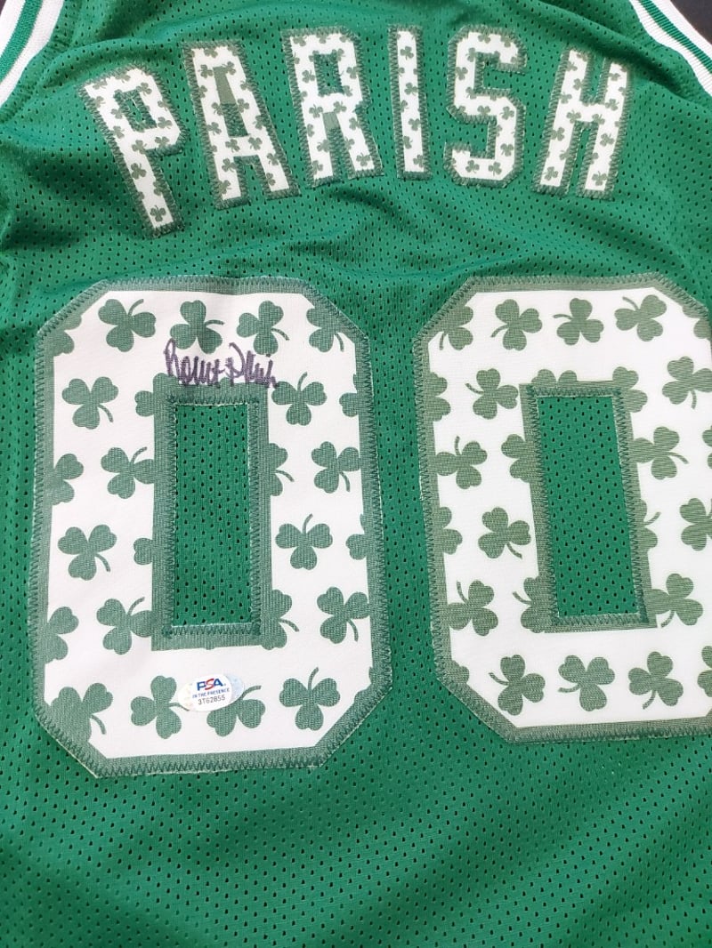 ROBER PARISH BOSTON CELTICS SIGNED GREEN CLOVERLEAF JERSEY