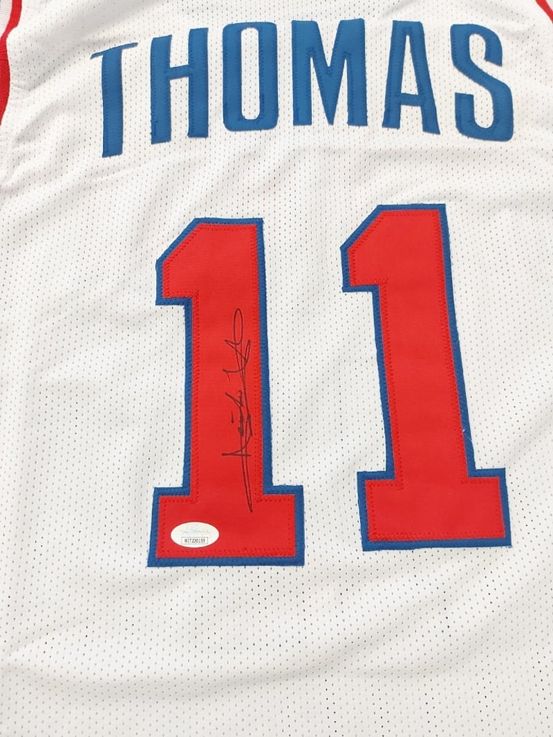 ISAIAH THOMAS DETROIT PISTONS SIGNED WHITE JERSEY