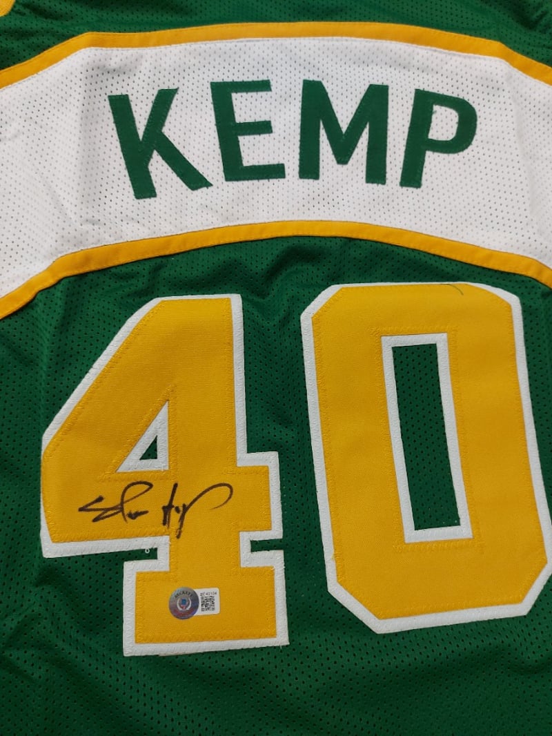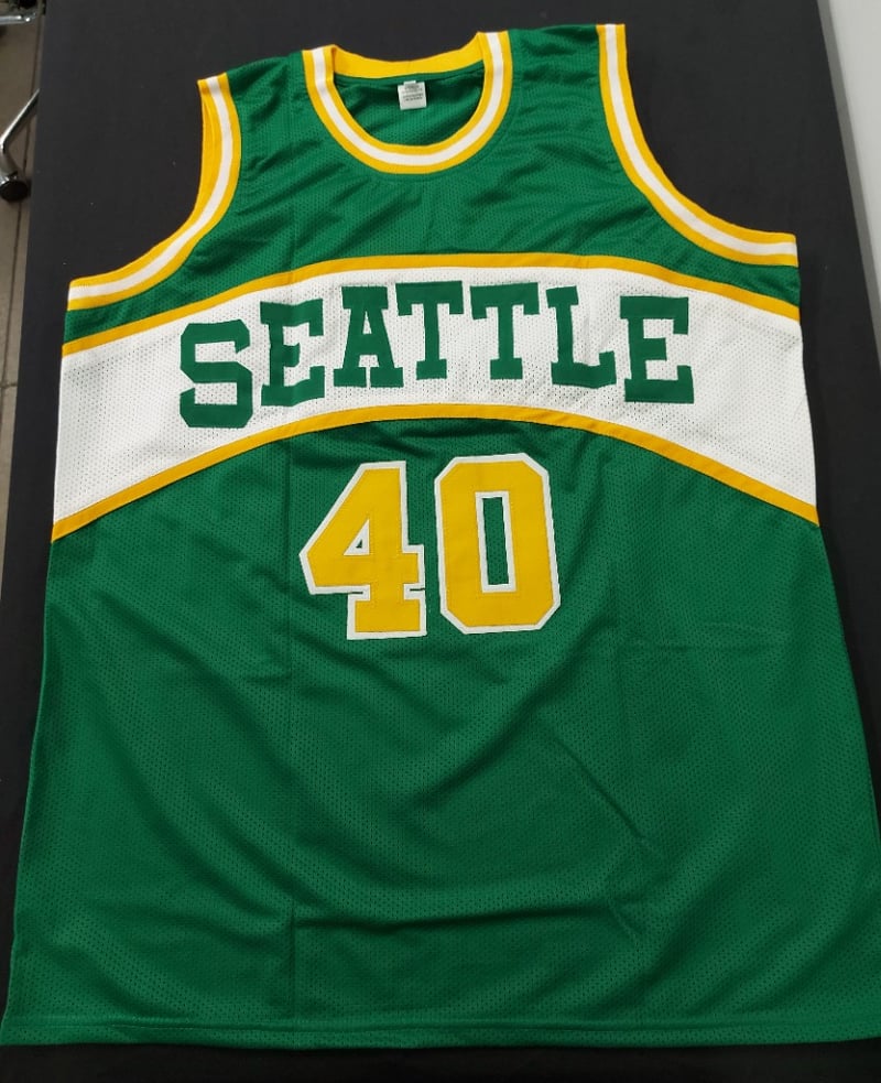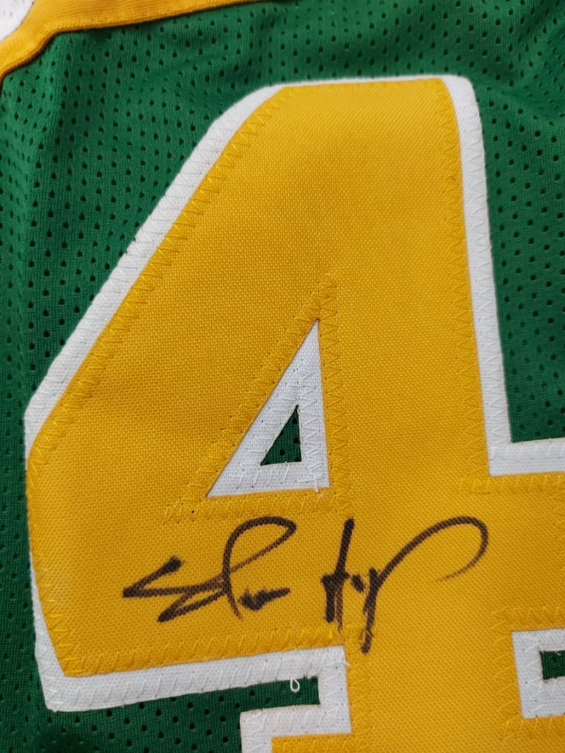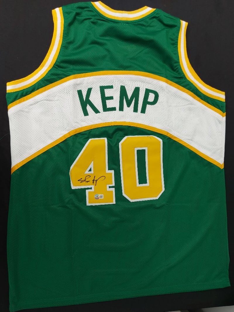 SHAWN KEMP SEATTLE SONICS SIGNED GREEN /WHITE JERSEY