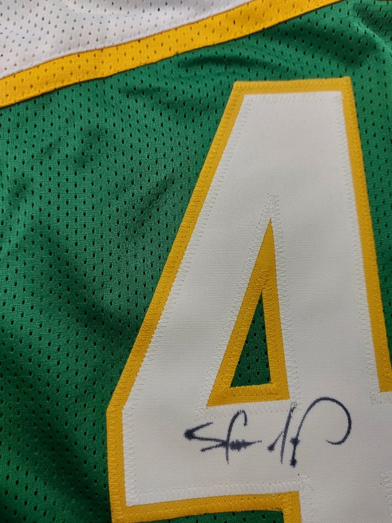 SHAWN KEMP SEATTLE SONICS SIGNED GREEN /WHITE JERSEY