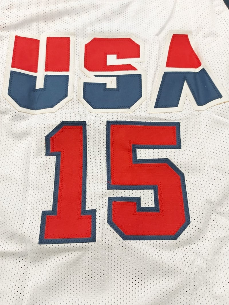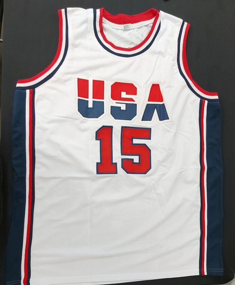 MAGIC JOHNSON USA SIGNED WHITE JERSEY