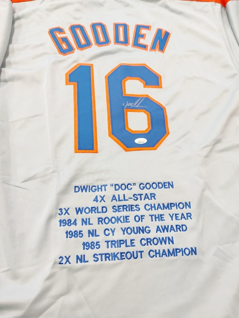 DWIGHT "DOC" GOODEN NEW YORK METS SIGNED #16 GREY JERSEY