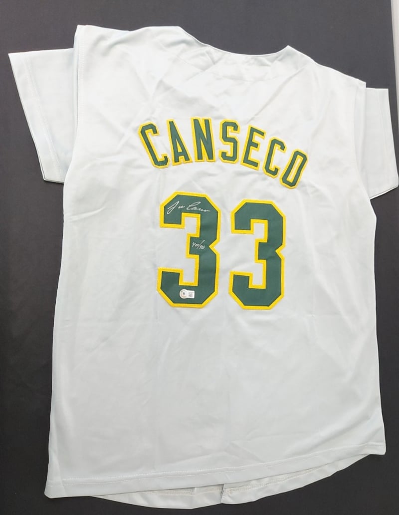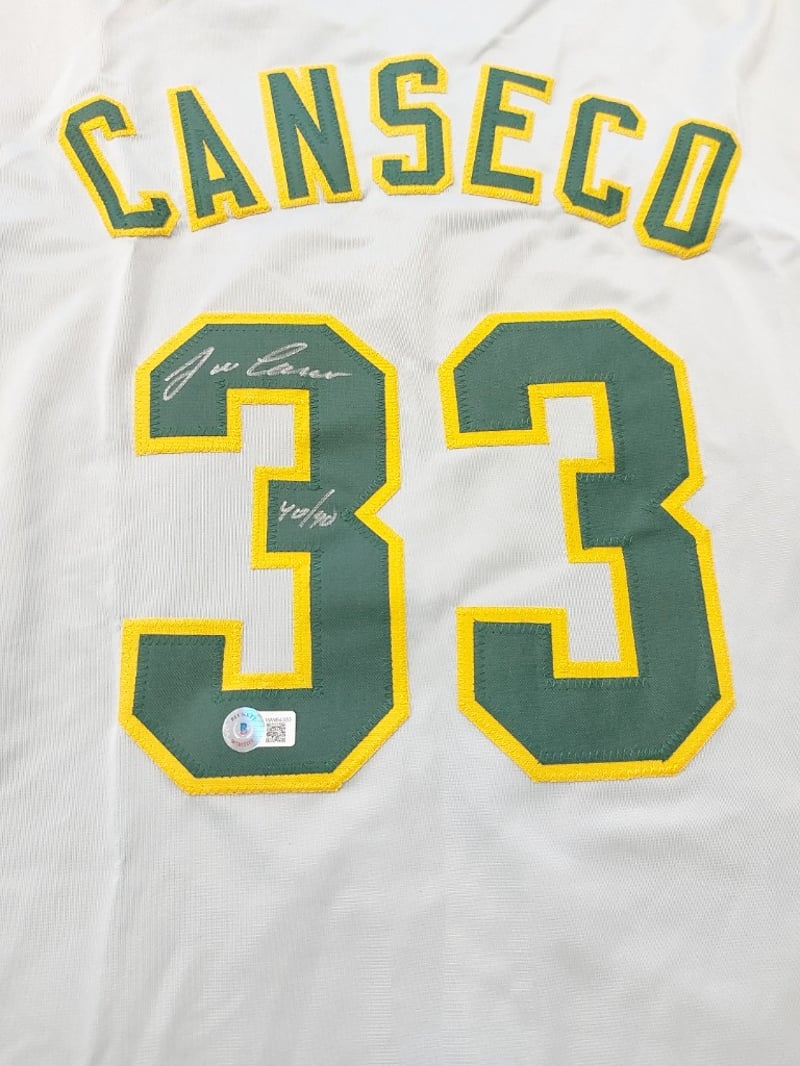 JOSE CANSECO OAKLAND ATHLETICS SIGNED #33 GREY "40/40" JERSEY